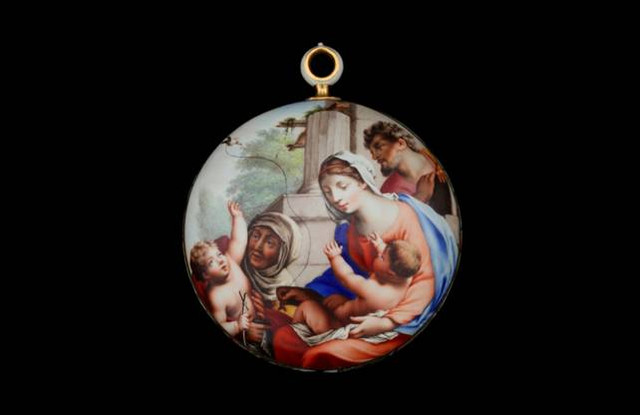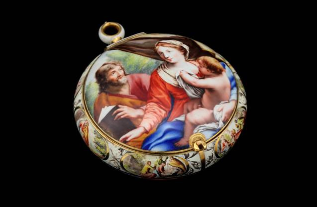 懷錶彩繪的主題,正是與宗教議題相關的『神聖耶穌家庭』〈Holy Family〉。