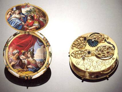 1640年巴黎 Francois Baronneau 的琺瑯彩繪懷錶。